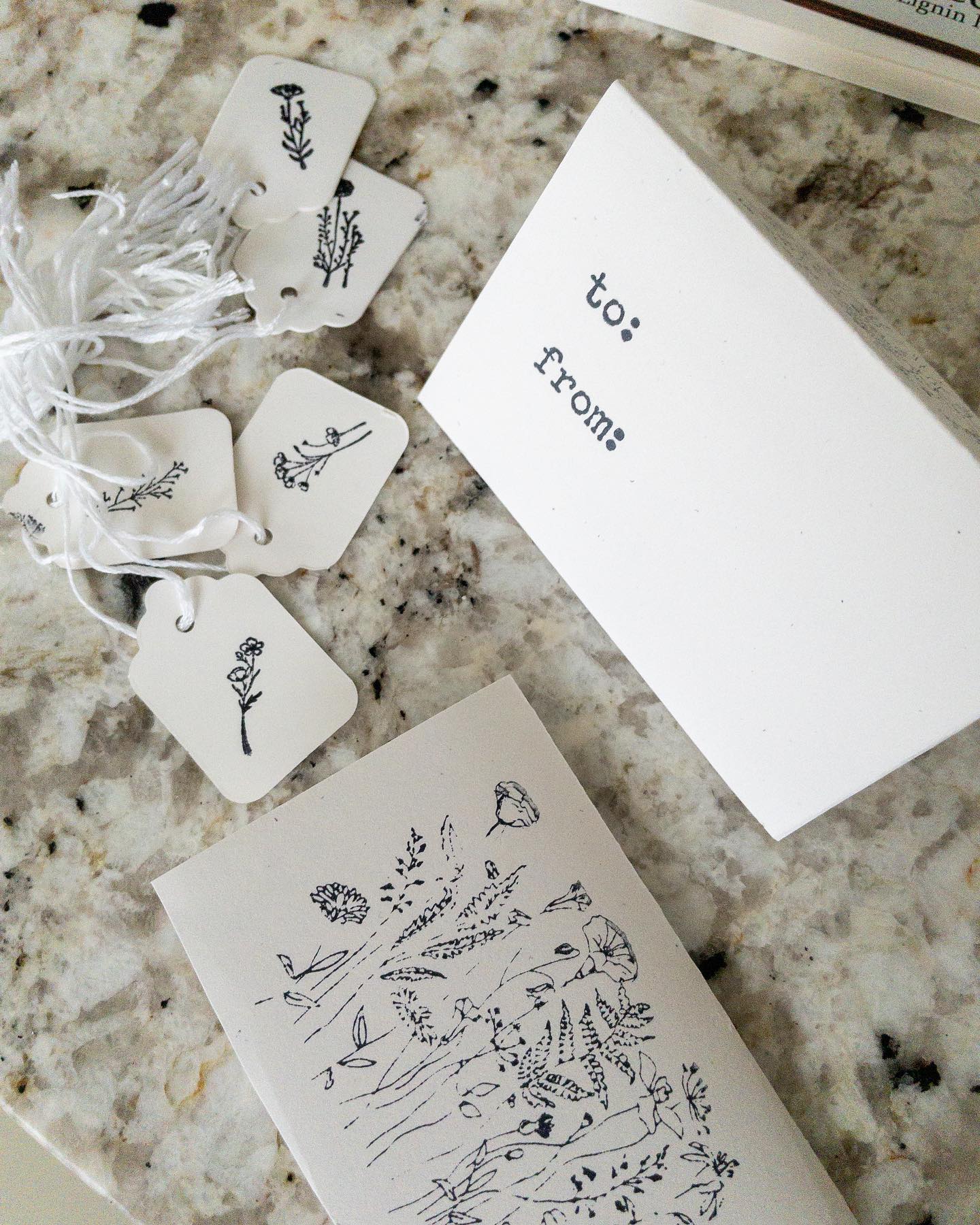 Herb-Themed BLANK Gift Cards, stamped with "To: / From: " and flower and plant motifs ready for your sweet hand-written message. Paper cut and folded to size. Made with materials from well-managed forests, recycled materials, and/or other controlled wood sources.